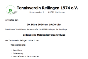 | Mai-Juli 2026 | Medenrunde - aktive Mannschaften |